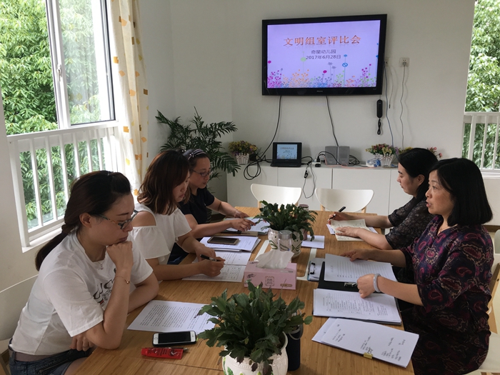 6月28日,奇星幼儿园召开了“文明组室评比会”。会上小班、中班、大班三个文明组室的室长分别作了5月、6月的文明组室小结。经过大家的打分评选,小班文明组室被评为本学期的优秀文明组室。